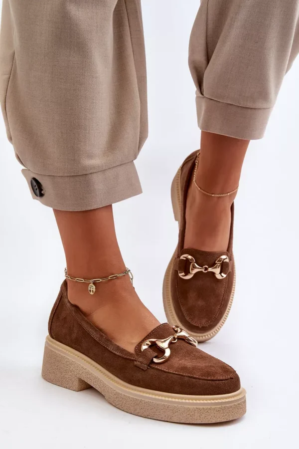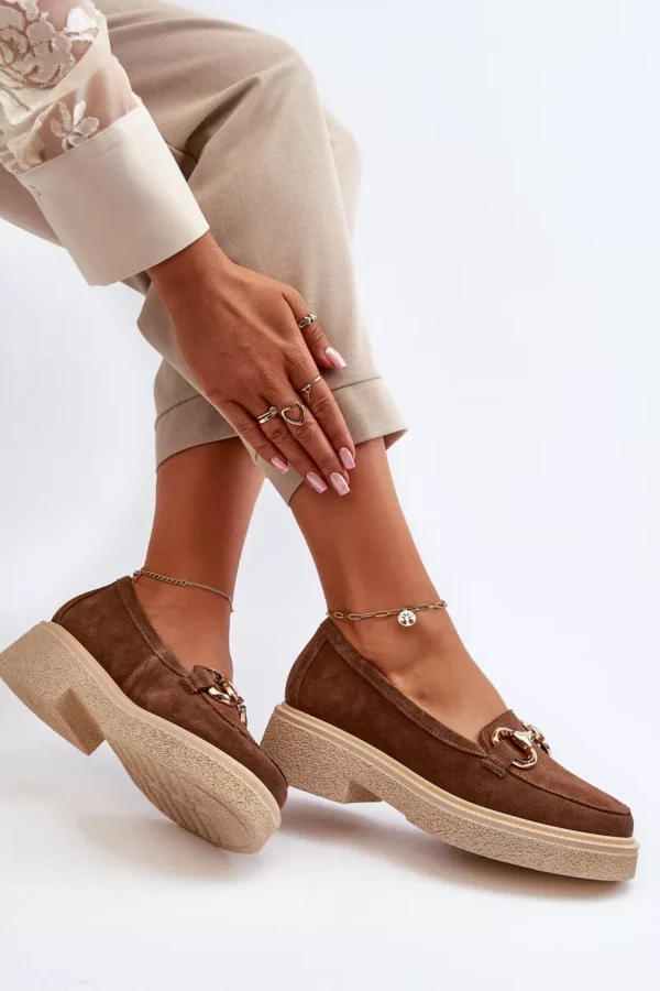 Zomšos mokasinai su aukso dekoracijomis