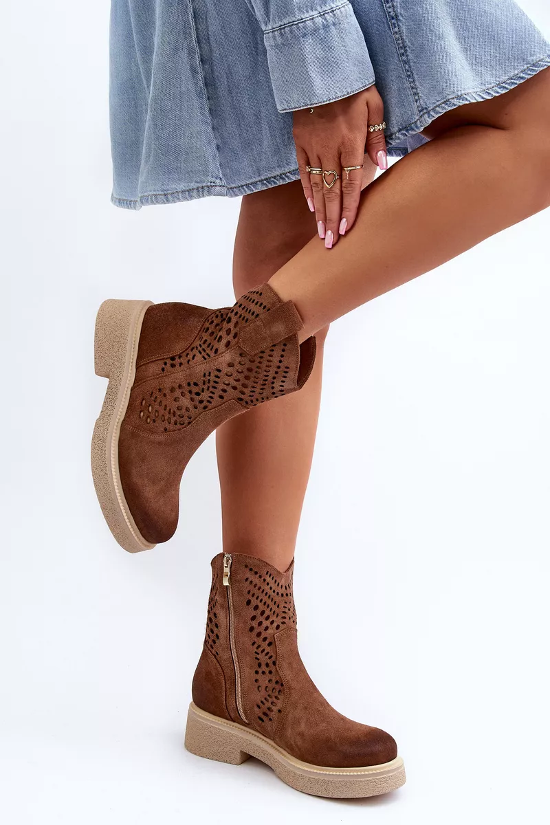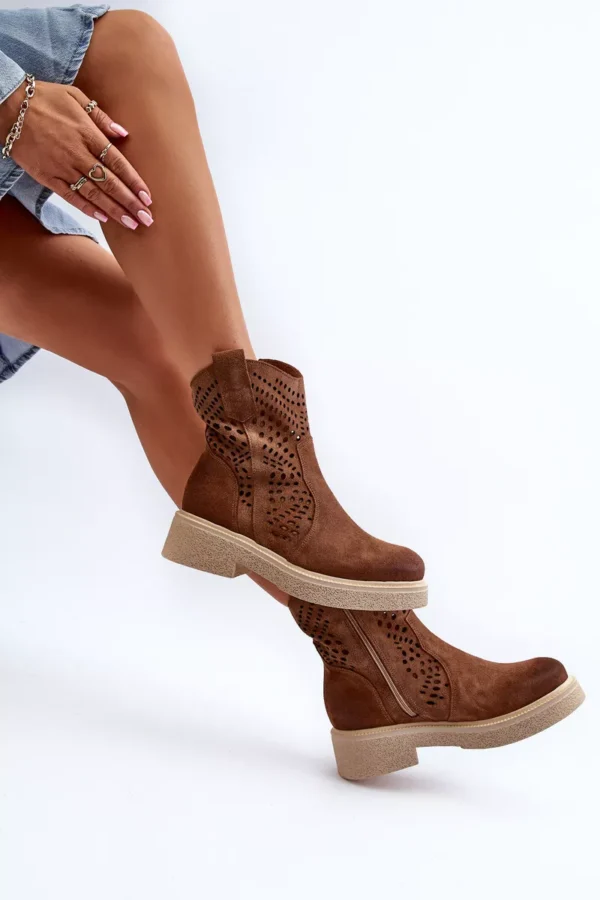Madingi ir patogūs aulinukai puikiai tiks bet kokiai progai. Pagaminti iš natūralaus zomšo. Ažūrinė apykaklė suteikia elegancijos ir lengvumo, pabrėždama originalų stilių. Užtrauktuko dėka juos lengva apsiauti ir pritaikyti prie pėdos. Suapvalinti priekiai užtikrina naudojimo patogumą. Šie aulinukai puikiai papildys įvairias stilizacijas! Pasirinkdami dydį, atsižvelkite į dydžių lentelę.