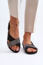 Šie sandalai pasižymi klasikinio stiliaus ir juodos spalvos deriniu, todėl jie lengvai derės prie įvairių kasdieninių ir proginių aprangų. Atvira kulno ir priekinė dalis suteiks pėdai gaivumo pojūtį net per karščiausias dienas, o šoninėse dalyse esanti logotipo emblema suteikia subtilaus žavesio.