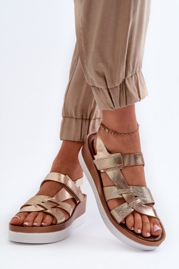 Nepaprastai patogūs moteriški sandalai pagaminti iš natūralios odos. Užsegami lipduku. Įmontuoti ant platformos ir lengvo pleišto. Minkštas, odinis vidpadis užtikrins komfortą avint karštomis dienomis. Šis modelis tikrai patiks Jums! Rinkdamiesi dydį, vadovaukitės dydžių lentele.
