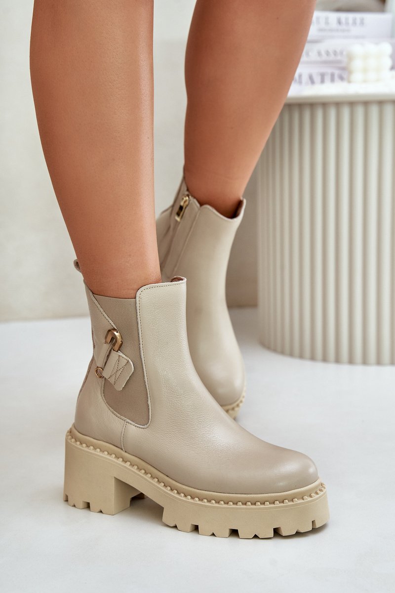 Auksinukai pagaminti iš aukštos kokybės natūralios odos. Užsegami užtrauktuku. Apšildyti veltiniu, kuris užtikrina komfortą šaltomis dienomis. Modelis turi užapvalintus priekius ir yra ant masyvaus kulno, o tai suteikia stabilumo. Pagrindinis privalumas yra sagos formos ornamentas. Rinkdamiesi dydį, atsižvelkite į dydžių lentelę
