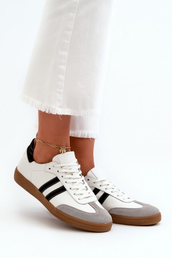 Modernūs moteriški sportbačiai, pagaminti iš natūralios odos. Tai puikus stiliaus ir patogumo derinys. Žemi, šnuoduojami batai puikiai dera tiek prie laisvalaikio, tiek prie elegantiškesnių įvaizdžių. Minkštas vidpadis užtikrina patogumą avint visą dieną. Puikiai tinka pasivaikščiojimams po miestą, apsipirkimui ar susitikimams su draugais, tai madingas ir praktiškas kiekvienos spintos priedas. Renkantis dydį, prašome vadovautis dydžių lentele.