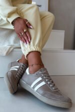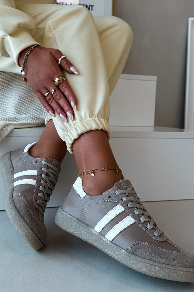 Modernūs moteriški sportbačiai, pagaminti iš natūralios odos. Tai puikus stiliaus ir patogumo derinys. Žemi, šnuoduojami batai puikiai dera tiek prie laisvalaikio, tiek prie elegantiškesnių įvaizdžių. Minkštas vidpadis užtikrina patogumą avint visą dieną. Puikiai tinka pasivaikščiojimams po miestą, apsipirkimui ar susitikimams su draugais, tai madingas ir praktiškas kiekvienos spintos priedas. Renkantis dydį, prašome vadovautis dydžių lentele.