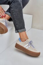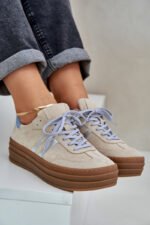 Stilingi moteriški sportbačiai, pagaminti iš aukščiausios kokybės natūralaus zomšo, yra puikus pasirinkimas kiekvienai moteriai, vertinančiai patogumą ir madingą išvaizdą. Šie unikalūs batai yra ant tvirtos, bet lengvos platformos, suteikiančios papildomo aukščio ir subtiliai liekninančios figūrą. Šie sportbačiai puikiai dera tiek su kasdienėmis, tiek su elegantiškesnėmis aprangomis, todėl yra universali garderobo dalis. Rinkdamiesi dydį, vadovaukitės dydžių lentele.