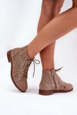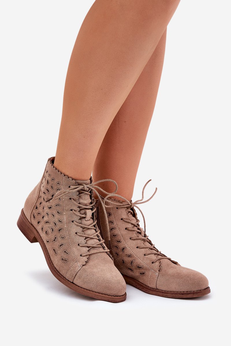 Moteriški eko zomšiniai aulinukai yra stilingas pasiūlymas vėsesnėms dienoms. Žemas aulas, dekoruotas ažūriniu raštu, suteikia jiems lengvumo. Suvarstomi ir užsegami užtrauktuku, todėl juos lengva apsiauti ir pritaikyti prie pėdos. Šie aulinukai puikiai tiks kasdienėms stilizacijoms, derinant funkcionalumą su madinga išvaizda.