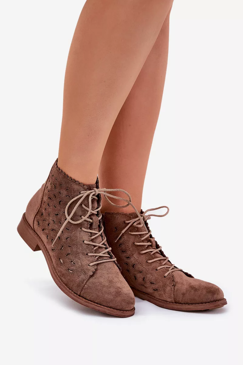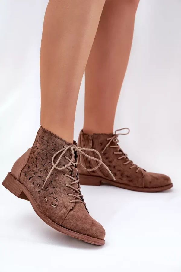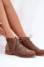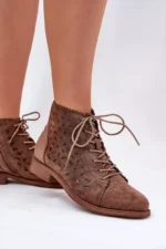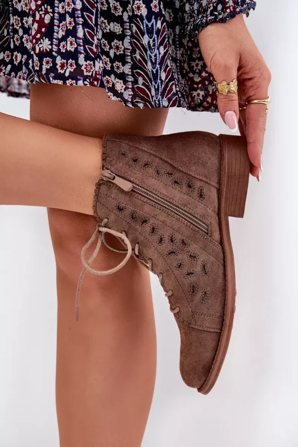 Moteriški žemakulniai batai iš ekologiškos zomšos yra puikus pasirinkimas vėsesnėms dienoms. Jų žema kulkšnies aukštis, dekoruotas iškirptu ornamentu, suteikia lengvumo įspūdį ir elegancijos. Batai turi raištelius ir užtrauktuką, todėl juos lengva apsiauti ir pritaikyti pagal savo kojas. Šis unikalus dizainas dera tiek su kasdiene, tiek su elegantiška apranga, suteikdamas modernų ir funkcionalų stilių.