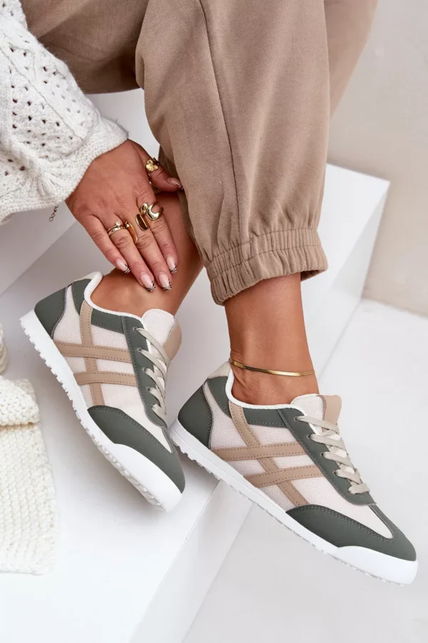 Šie žemi dailūs kedai “Eezore” smėlio-žalios spalvos suteikia stilingą ir patogų sprendimą kasdienėms išvykoms. Pagaminti iš orui pralaidaus tinklelio ir ekologiškos odos, šie kedai užtikrina optimalų komfortą visą dieną. Apvalus nosies dizainas suteikia klasikinį bei elegantišką vaizdą, tinkantį įvairioms progoms.
