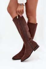 Moteriški šilti aukšti batai su užtrauktuku, juodi Ivasira