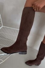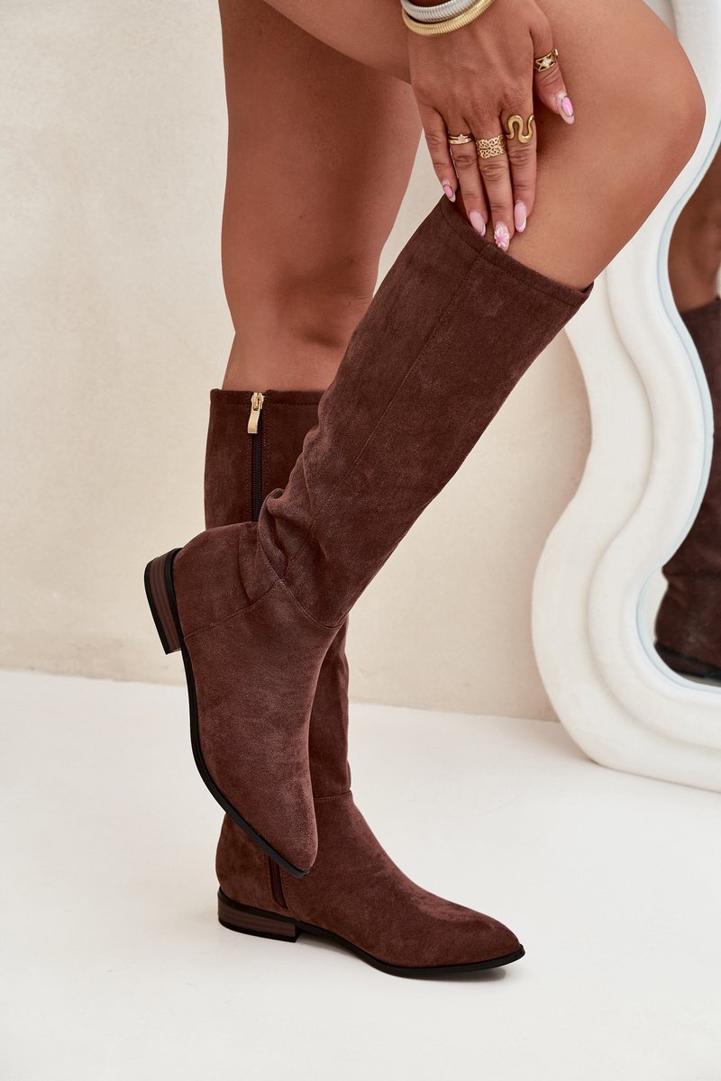 Zomšiniai batai su plokščiu kulniuku rudi Eelin