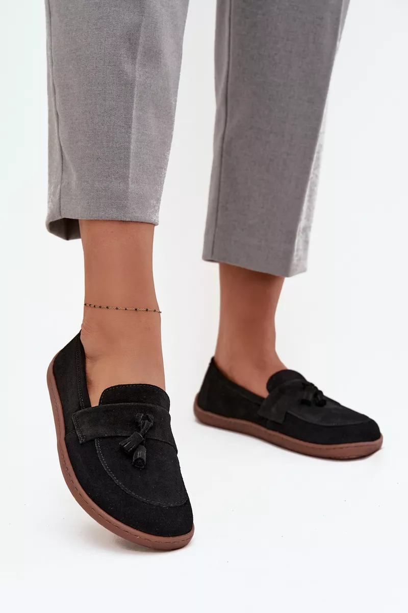 Zomšiniai mokasinai natūraliai odai, basutės tipas Zazoo 322 juodi